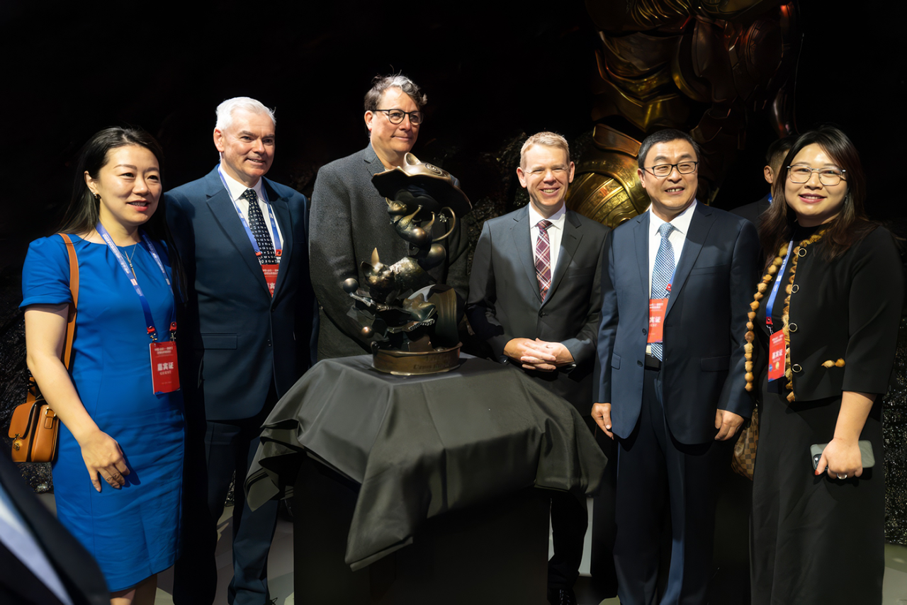在双方领导和嘉宾的共同见证下,乖宝新西兰项目的形象IP雕塑隆重揭幕。幕布缓缓落下,全场掌声雷动,标志着乖宝项目从高端制造走向国际创意表达,也成为活动最具仪式感的高光瞬间。