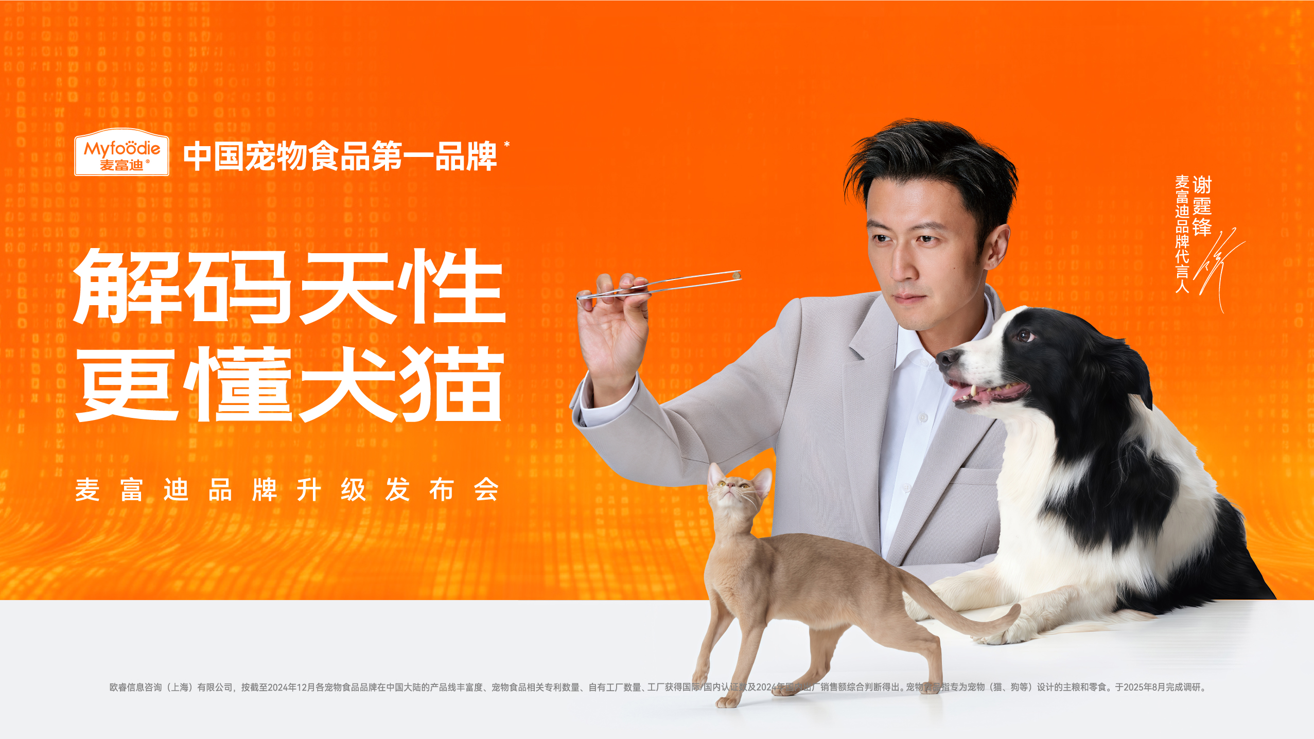 谢霆锋的沉稳、专业与责任感,与麦富迪“数据解码犬猫天性”的品牌理念高度契合,成为品牌精神的最佳诠释者。