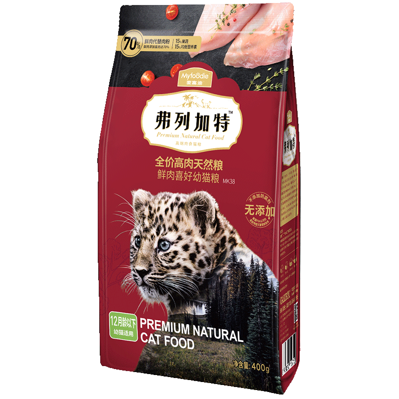 鲜肉代替肉粉,鲜肉高达70%,不添加防腐剂;15%果蔬,16%均衡营养素;满足猫咪生长营养需求; 不含过敏谷物,美国FDA认证的高能物理灭菌保鲜技术; 量身定制专属颗粒