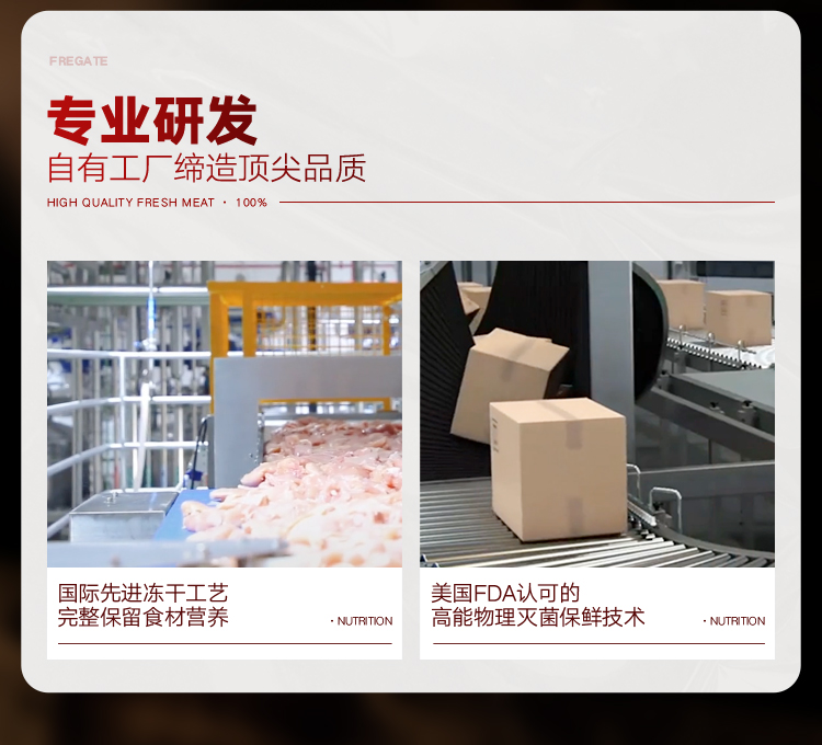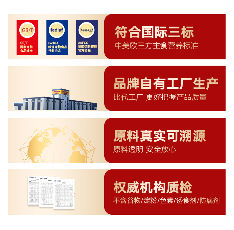 麦富迪采用全球9大天然食材产地直供,出口33个国家,坚持国际标准